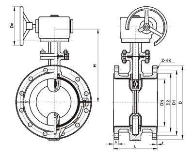 為了方便客戶安裝要求,本表給定的數值與蝶閥連接的標準、法蘭尺寸,簡圖中尺寸代號僅是其中一部分
